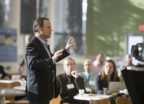 Al terminar la presentación ante su cliente, Carlos sale apresuradamente de la sala de reuniones y se va…
