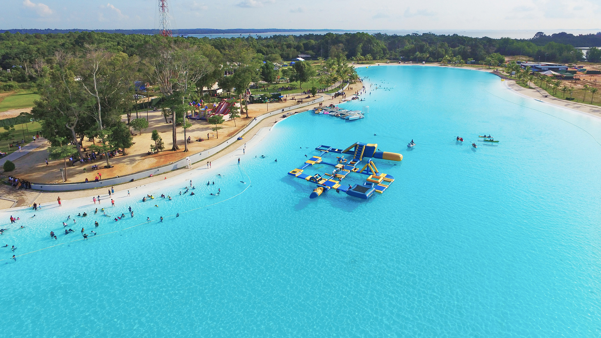 Treasure Bay Bintan is considered a great adventure tourism destination in the region that receives visitors from all over the world and has as its main meeting point an immense body of turquoise waters of 15,5- acres with Crystal Lagoons® technology, surrounded by 1,400 meters of white sandy beaches, 800 meters long and a maximum depth of 2.5 meters.