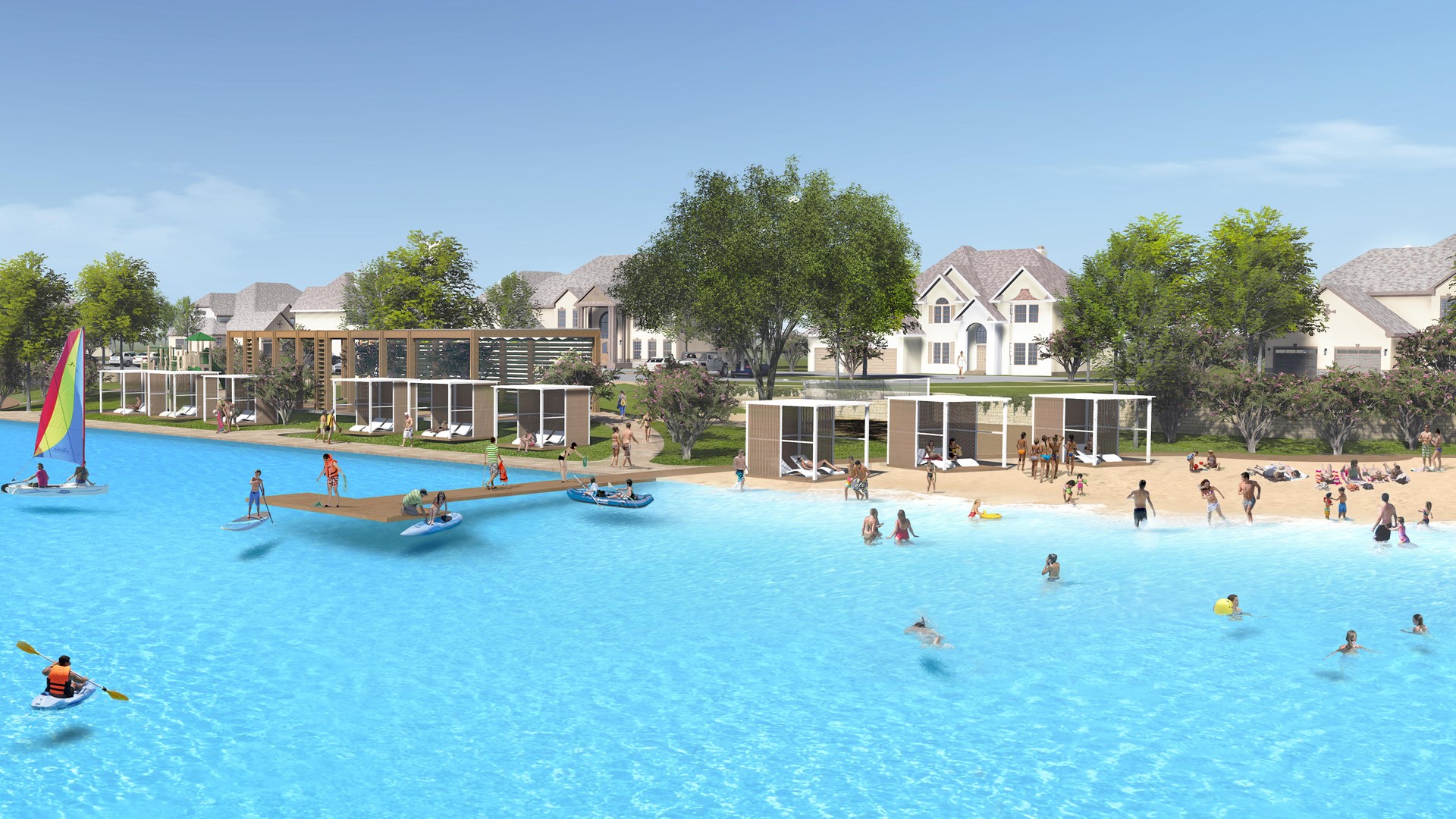 Gracias a la tecnología de Crystal Lagoons, la laguna de aguas color turquesa utilizará 30 veces menos agua que un campo de golf del mismo tamaño y se puede llenar con cualquier tipo de agua, incluida la de agua salada. También usa 100 veces menos químicos que las piscinas tradicionales y consume solo el 2% de la energía requerida por los sistemas tradicionales de filtración de piscinas. Todas estas innovaciones dan como resultado un cuerpo de agua dulce limpio y cristalino, perfecto para una amplia variedad de actividades recreativas: que van desde la natación, kayak, carreras de botes con control remoto hasta remo y windsurf.